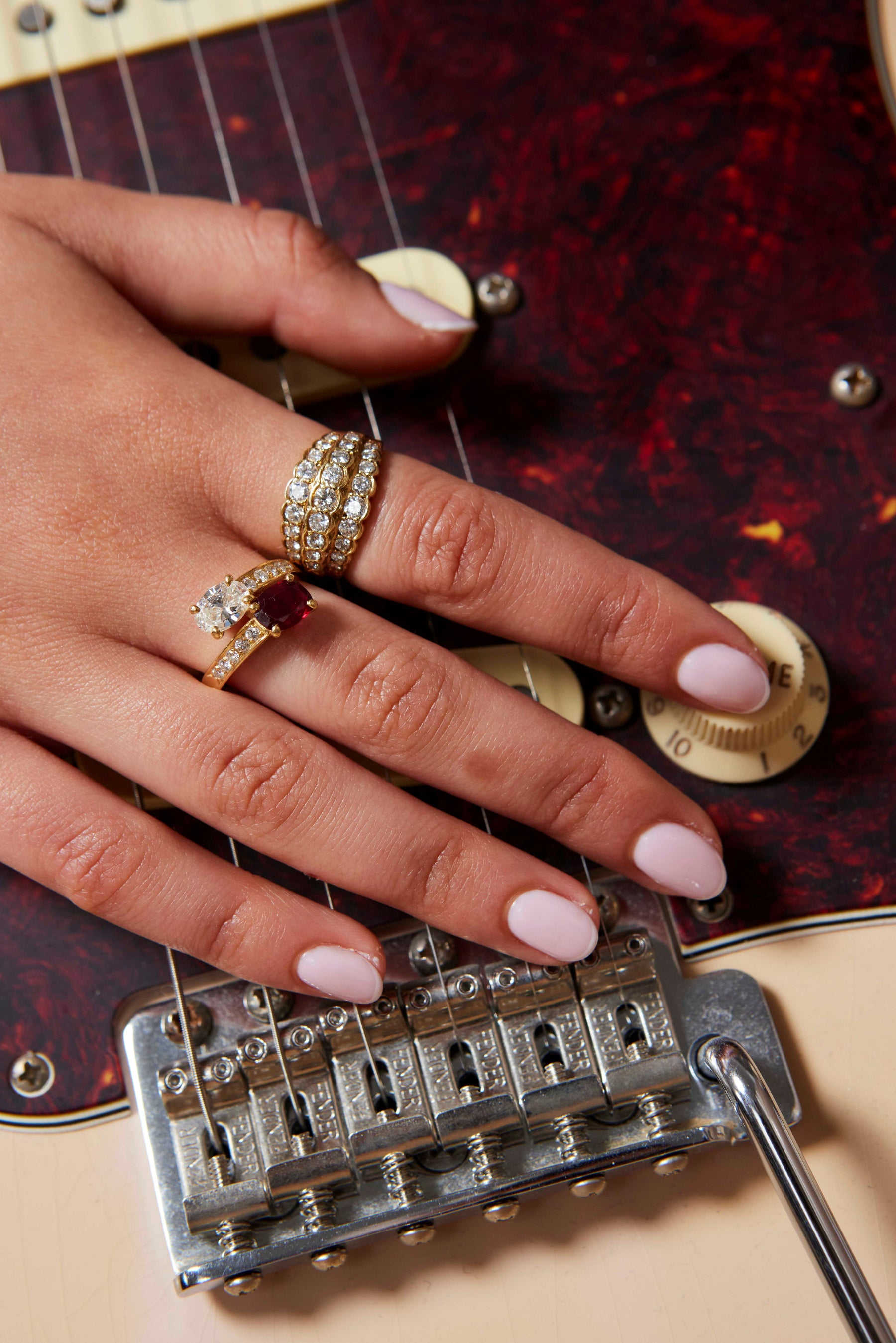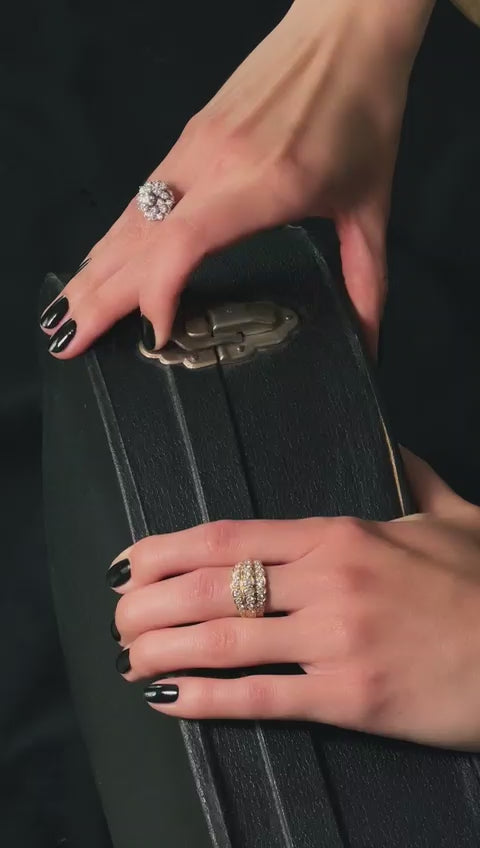 Bague Bandeau en or jaune (18k) sertie de 3 lignes de diamants naturels ronds taille brillant en chute.